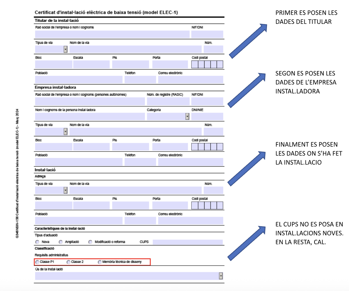 - Certificat model ELEC-1, per a totes les instal·lacions